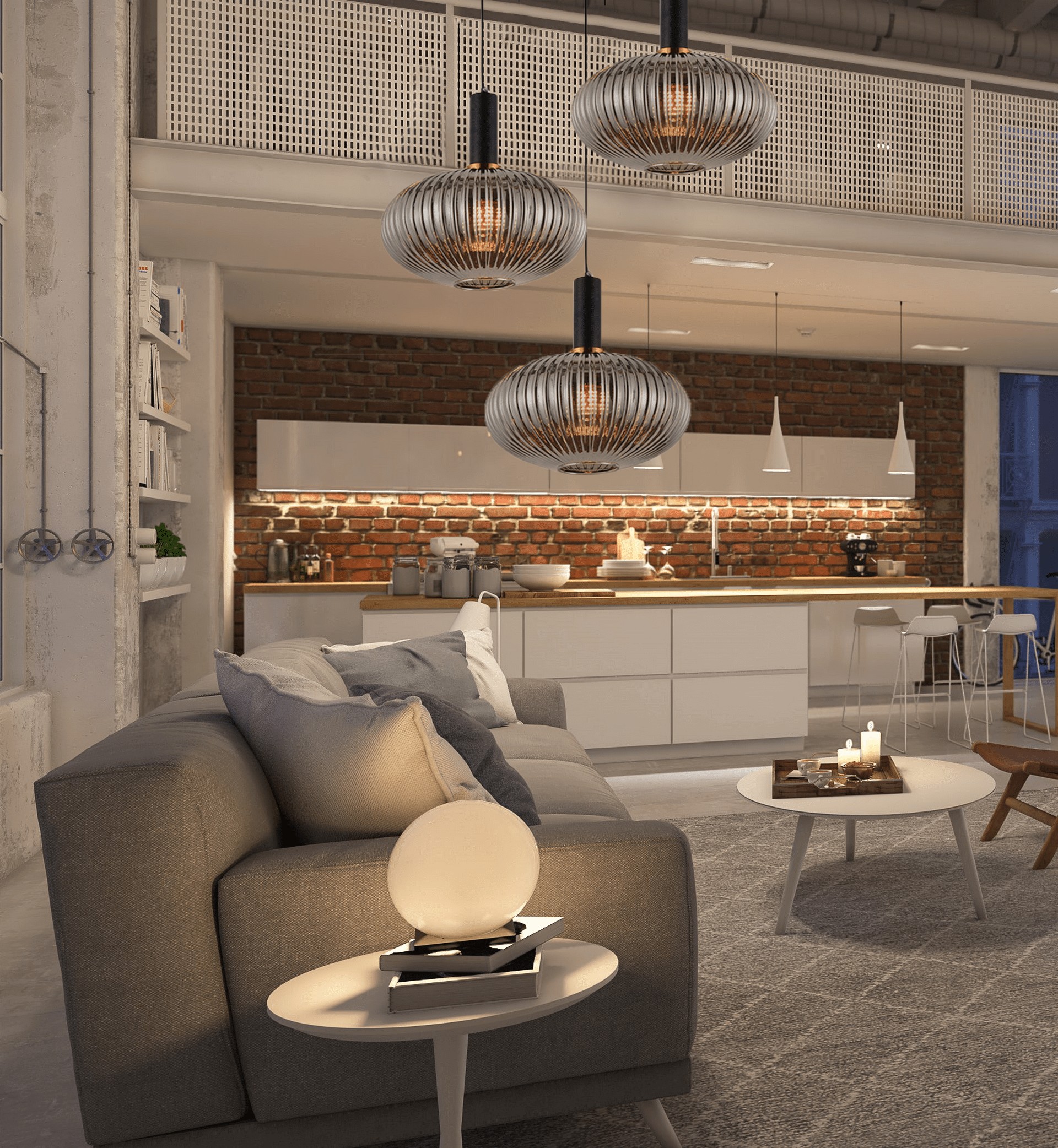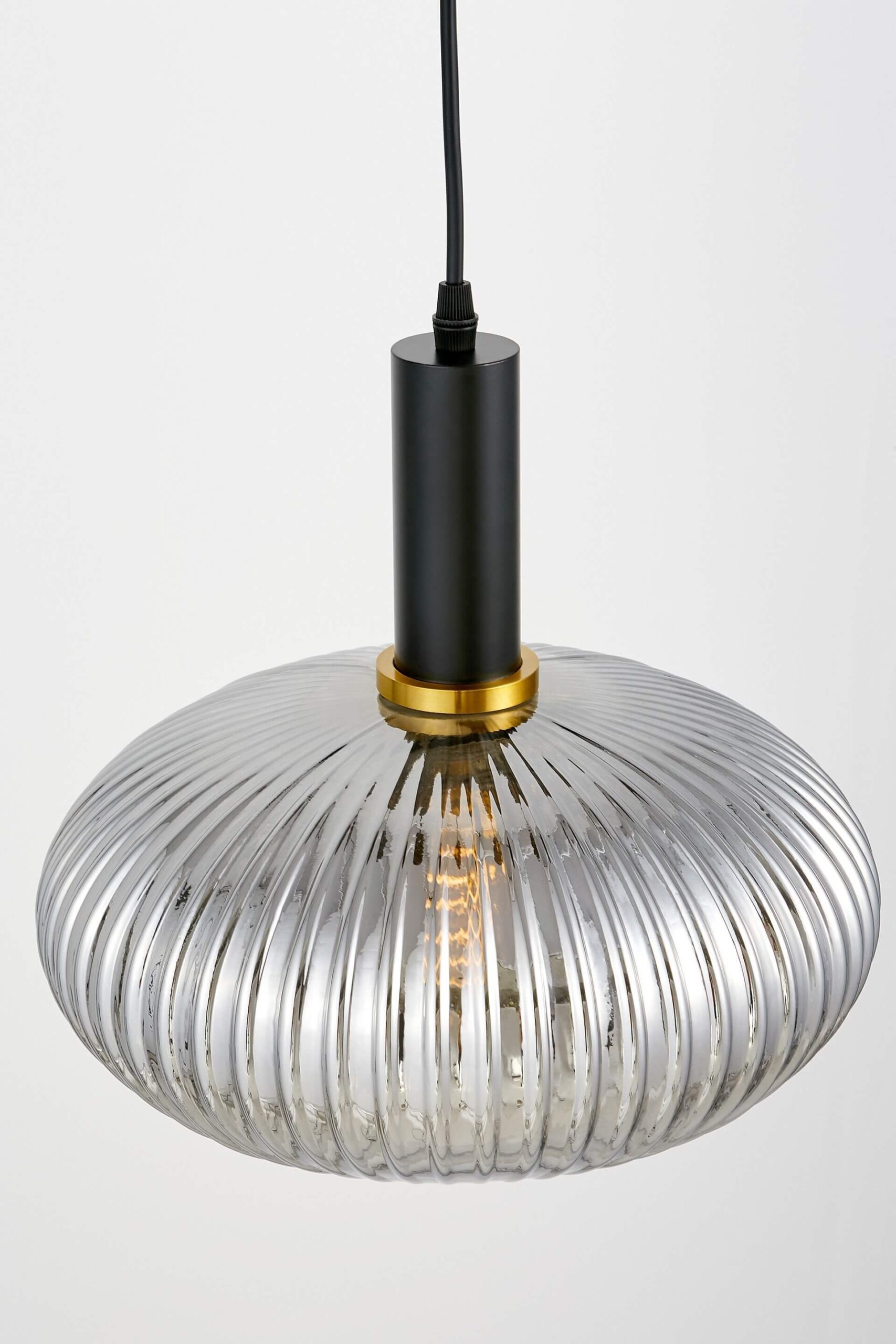 La lampada di design con paralume in vetro FLORI è una luce moderna perfetta per illuminare la cucina oppure locali commerciali come ristoranti e bar. Il paralume della lampada misura 30 cm e si caratterizza per una forma interessante, curata nei particolari. Al paralume in vetro grigio fumo è abbinato un elemento decorativo a forma di anello color ottone. La resa estetica è davvero eccezionale.