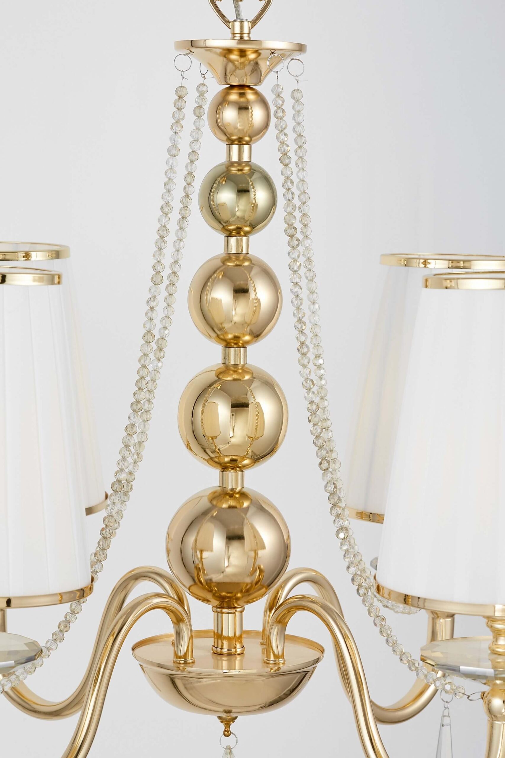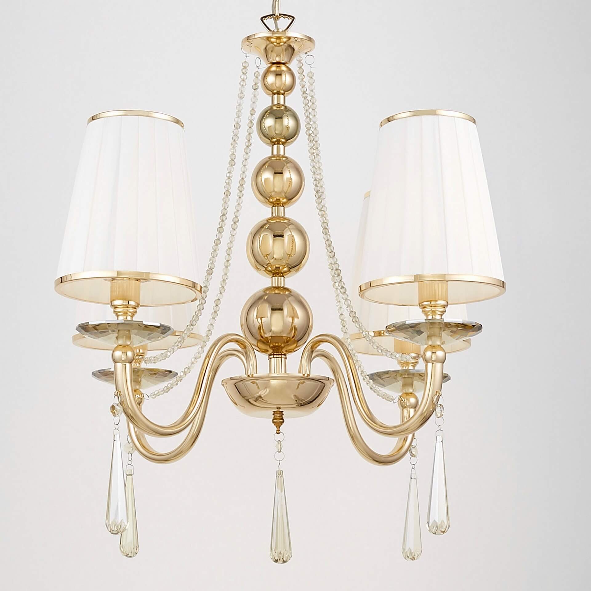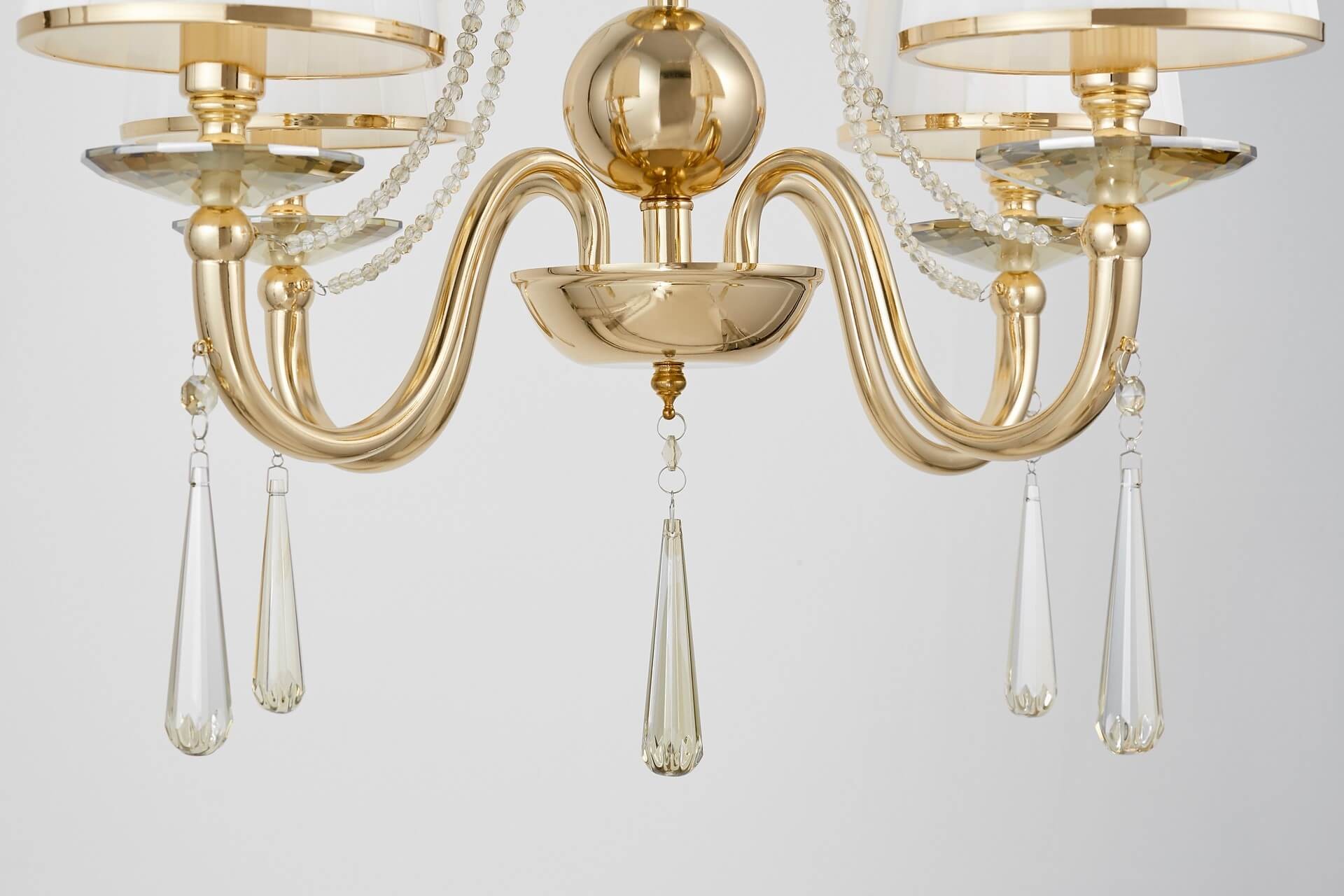 FABIONE W4 è un lampadario classico oro con 4 luci pratico e funzionale. La struttura in metallo dorato si abbina perfettamente ai 4 paralumi in tessuto plissettato color crema. Il lampadario dona agli ambienti di casa uno stile regale, nobilitando le stanze grazie ai pendenti in cristallo e alla struttura fortemente decorativa.