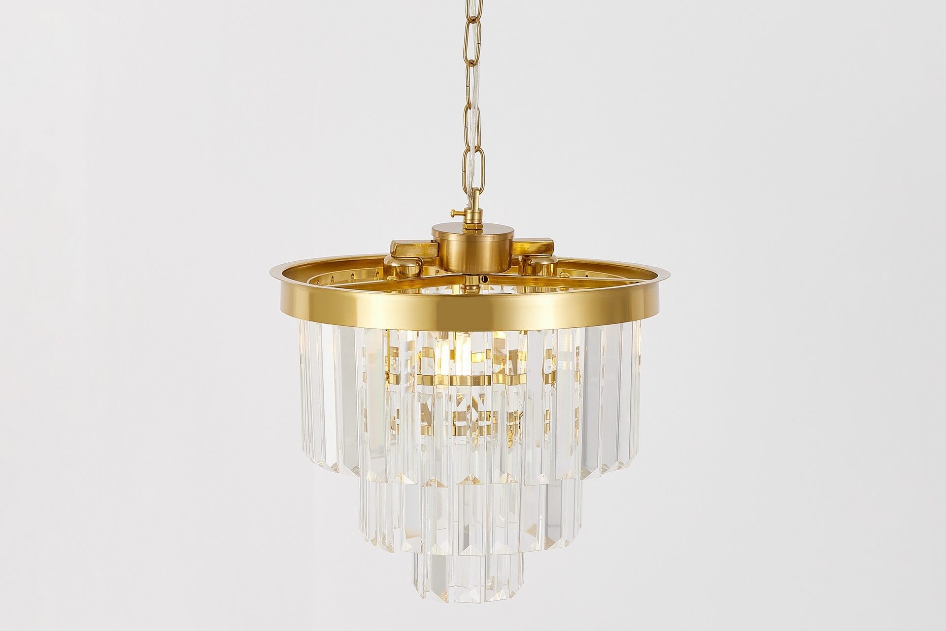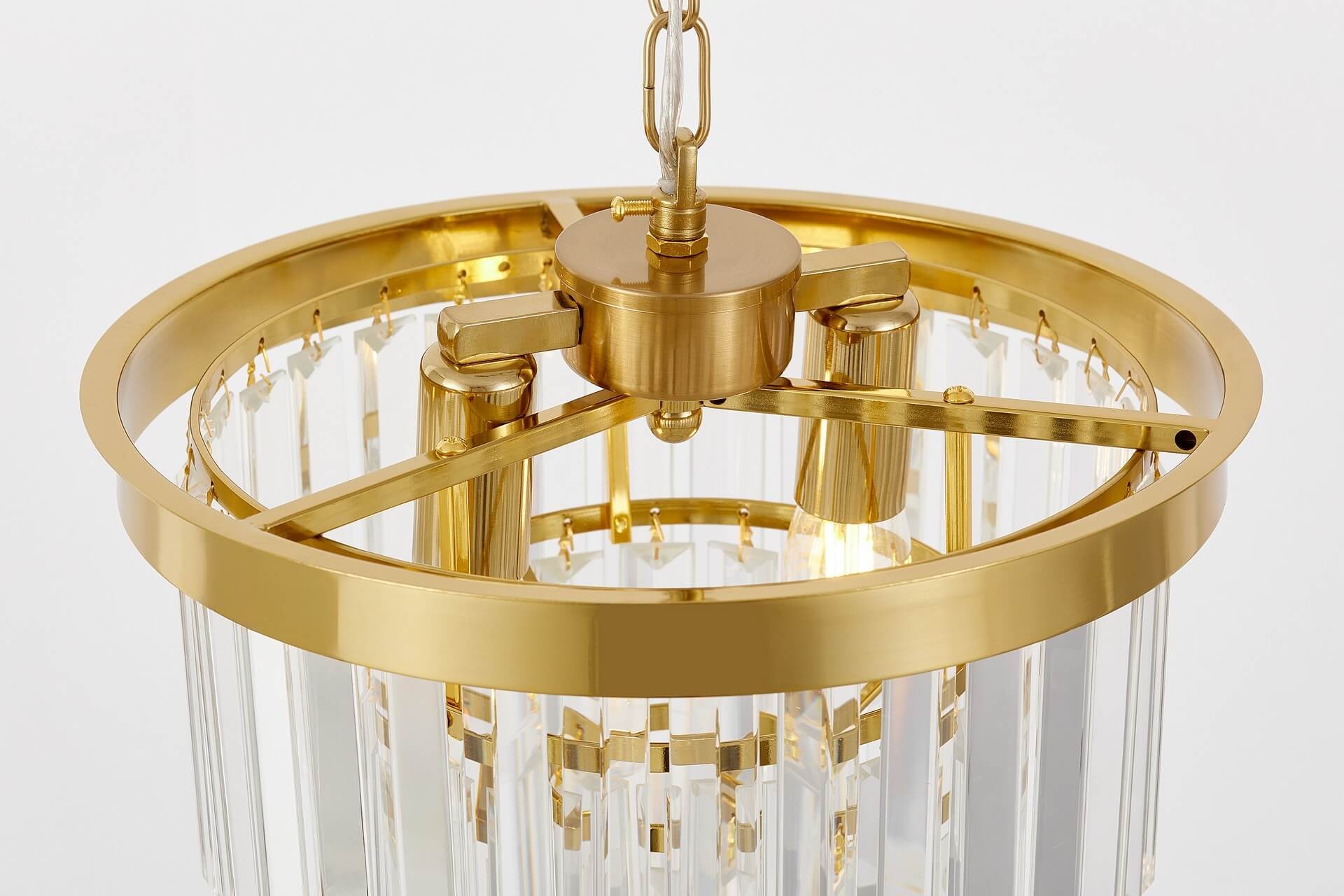 Grazie al diametro contenuto di 30 cm, il Lampadario moderno con cristalli ottone CAPRIA D30 è perfetto per ambienti di dimensioni ridotte o per installazioni multiple in serie, creando composizioni luminose scenografiche e coordinate.